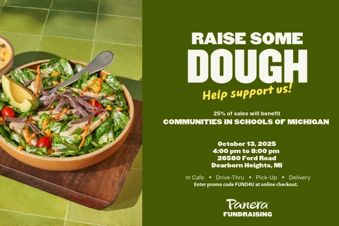 Visit the Dearborn Panera at 26580 Ford Road, Dearborn Heights, MI 48127 on October 13 from 4:00 - 8:00 PM and help support CIS of Michigan while enjoying a meal. Use code FUND4U online, in the Panera app, or at the kiosk in-store.